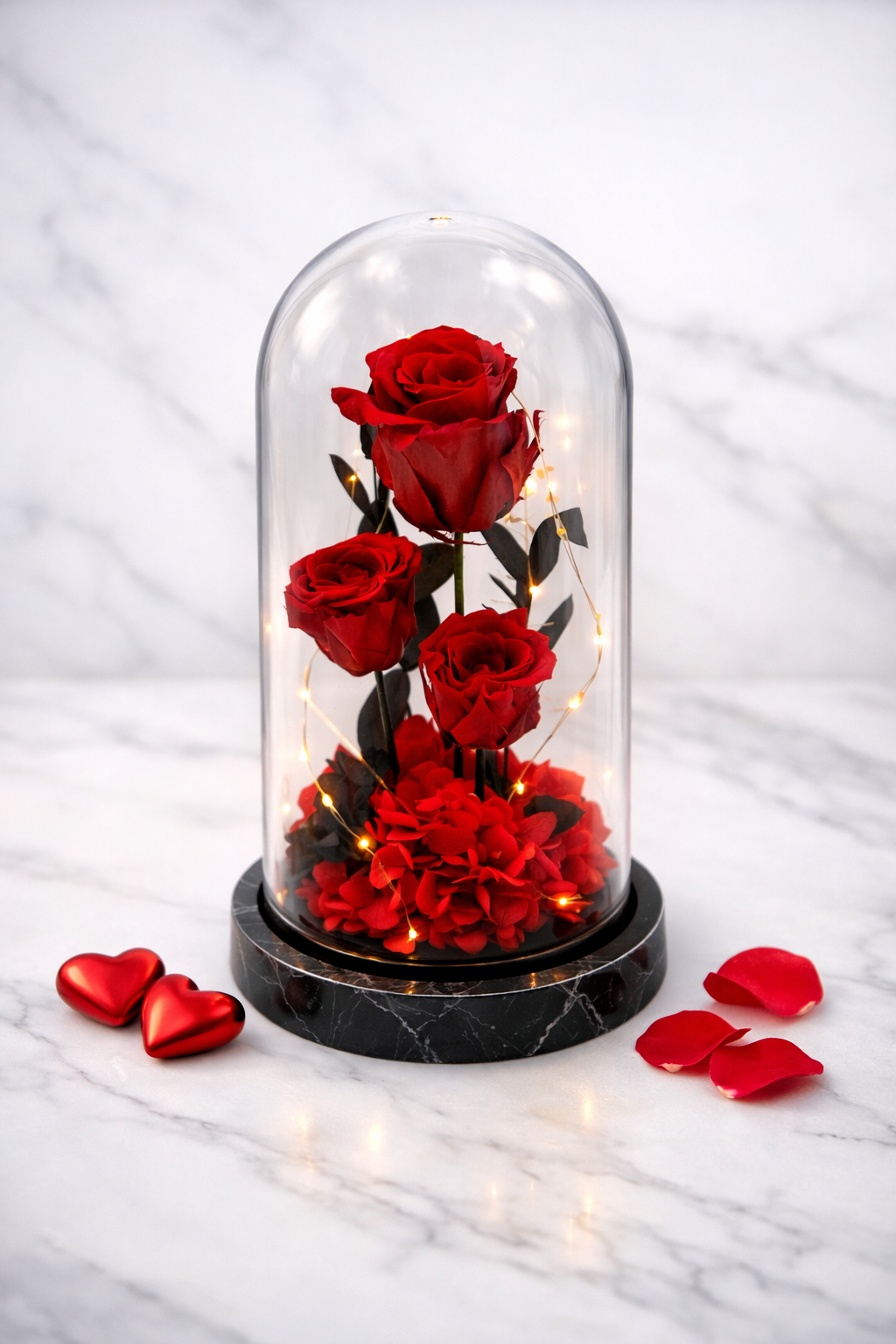 Σύνθεση με κόκκινα παντοτινά τριαντάφυλλα