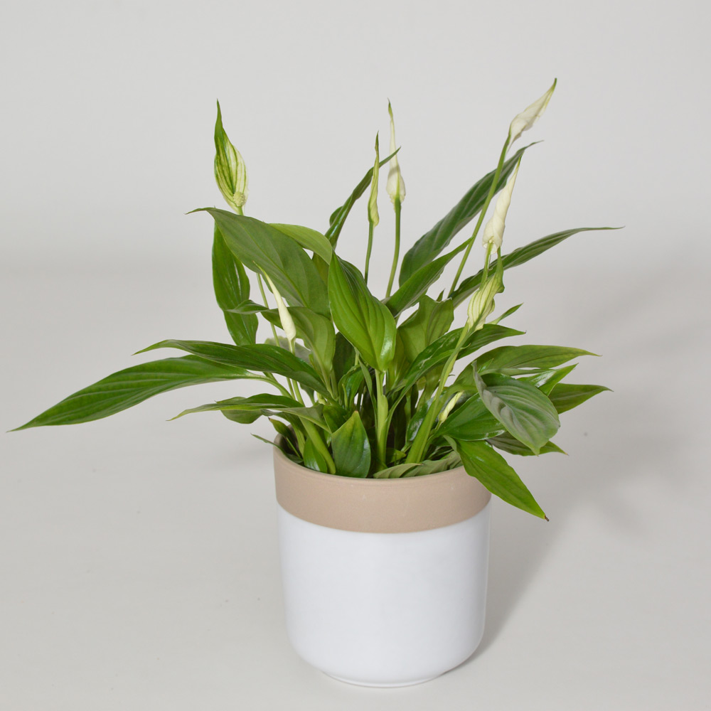 Σπαθίφυλλο σε μπεζ κεραμικό κασπώ.