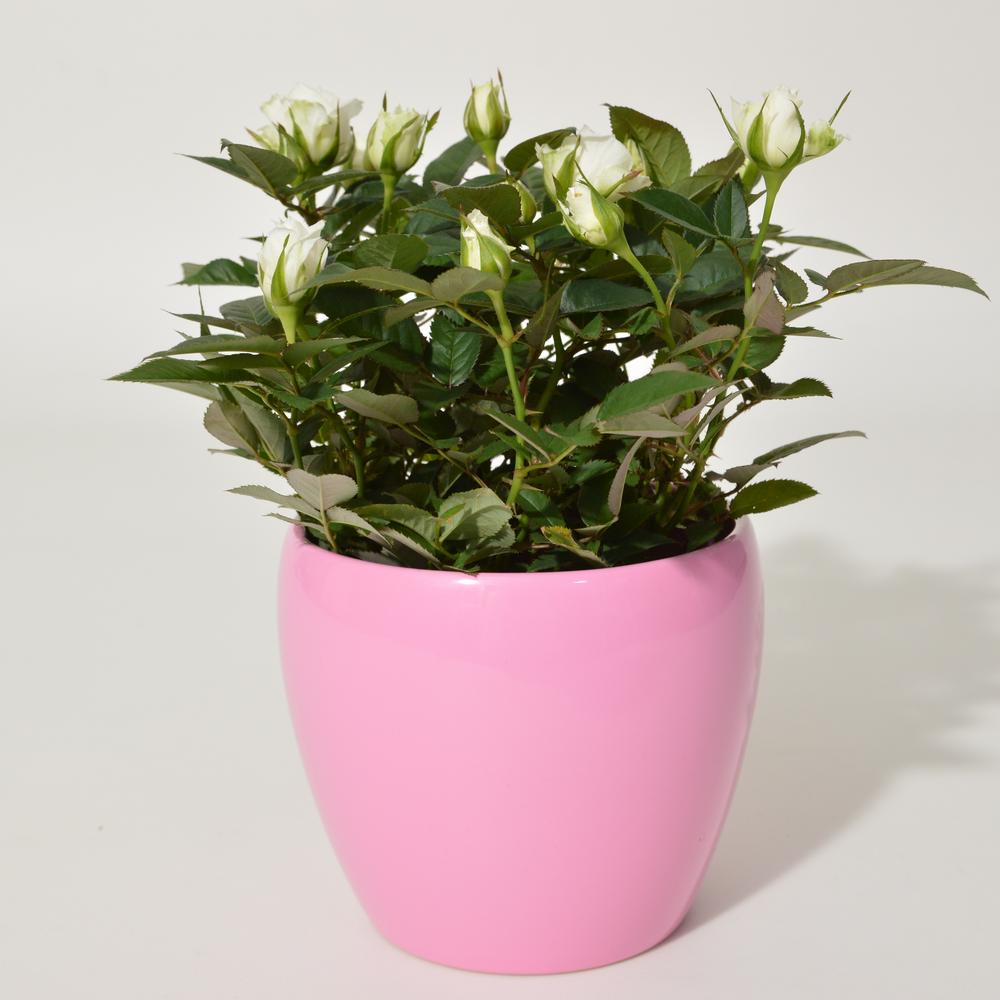 Τριανταφυλλιά σε ροζ κεραμικό κασπώ.